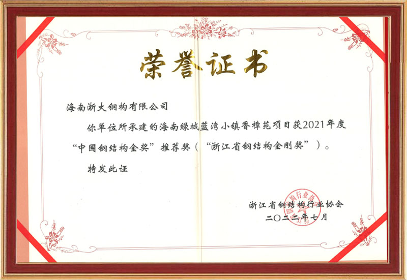 2021年度浙江省鋼結構金剛獎